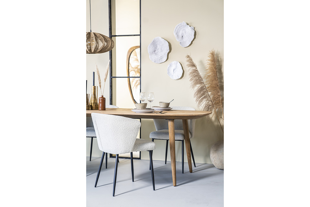 De Tabassum eettafels stralen een natuurlijke schoonheid uit dankzij het gerecyclede teakhout, dat bekend staat om zijn rijke textuur en prachtige nerfpatronen. Elk tafelblad heeft zijn eigen unieke karakter en verhaal, met subtiele variaties in kleur en structuur die elk stuk een authentieke en tijdloze uitstraling geven.