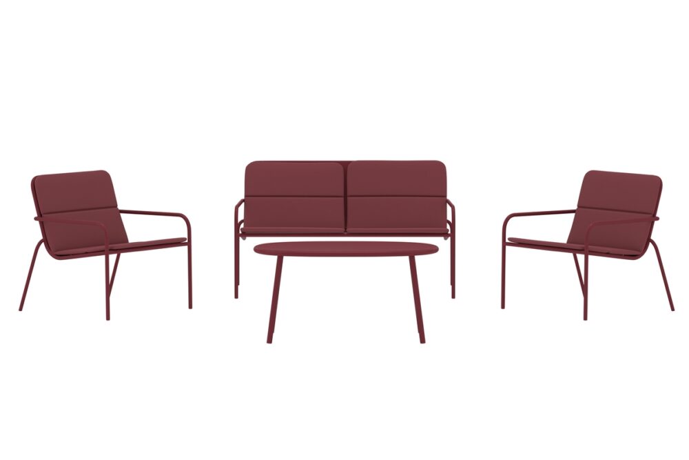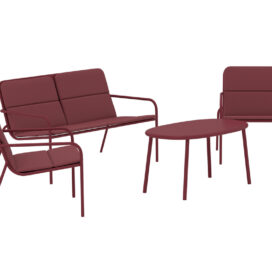 De Fourni loungeset is een moderne en strakke meubelgroep in een diepe bordeauxrode kleur die uw terras een elegant en uniek karakter geeft. De set bestaat uit een sofa, twee fauteuils en een bijpassende tafel in dezelfde tint waardoor een samenhangend en harmonieus geheel ontstaat.