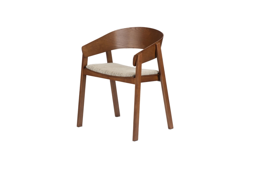 Het frame is vervaardigd uit massief essenhout met een Bruine afwerking. De zitting is opgebouwd uit multiplex en voorzien van foamvulling, bekleed met een slijtvaste polyester stof. Deze combinatie biedt een stevige basis en prettig zitcomfort, ook bij langdurig gebruik.