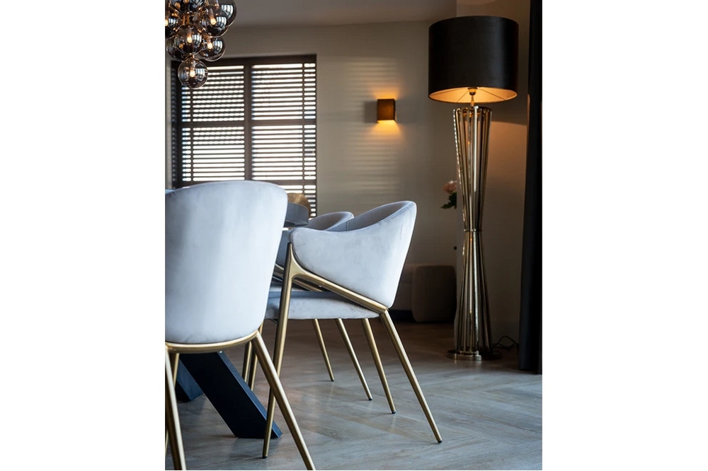 Eetkamerstoel Gwen van het merk Richmond Interiors is een fijne, zachte en mooi vormgegeven stoel. De gouden poten lopen prachtig door in zitting van de stoel. Een echte chique uitstraling! Perfect om lang na te tafelen. De zitting is in het velvet/fluweel en verkrijgbaar in 2 kleuren, Antraciet en Khaki.