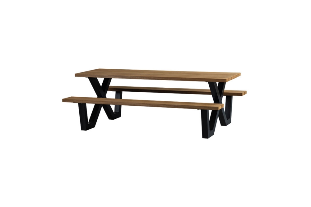 Woood Tablo Outdoor Tuin Picknicktafel – Ayous Naturel X-Poot Metaal Zwart 206cm