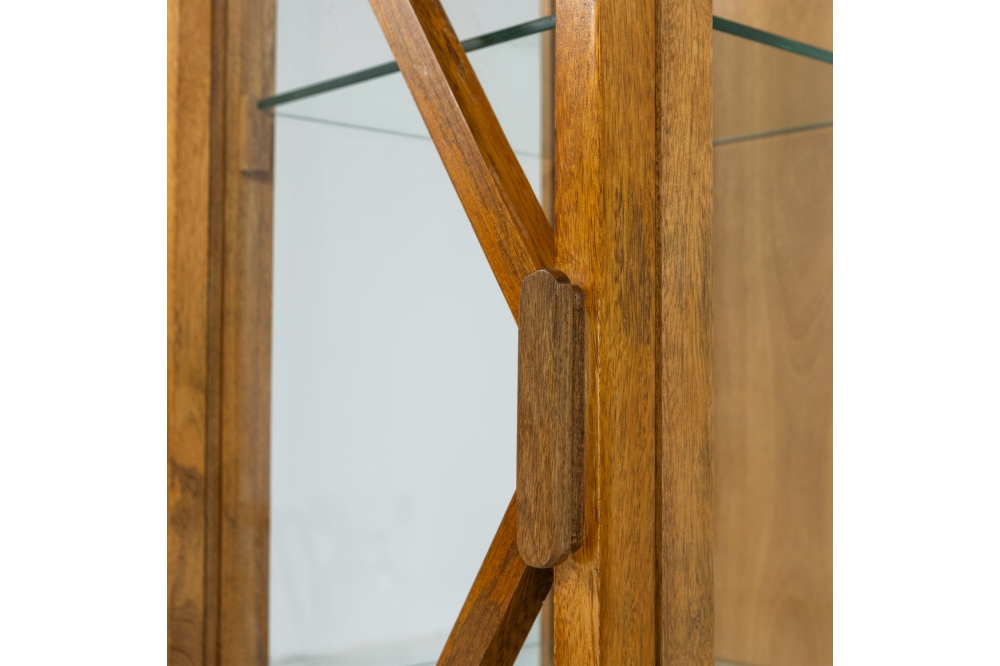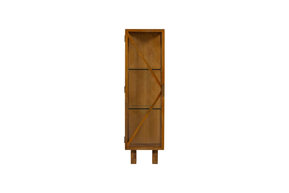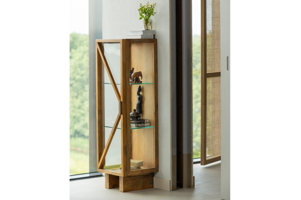 Woood Kella 1-Deurs Virtinekast: een elegante vitrinekast met glas, gemaakt van mangohout met een stijlvol design