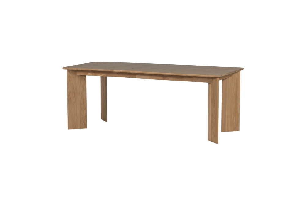 De tafel is gemaakt van stroken verlijmd eikenhout met een vingerlasverbinding wat een speels motief creëert. Eikenhout wordt gekenmerkt door de duidelijk zichtbare nerftekening. De natuurlijke imperfecties van het eikenhout maken elke tafel uniek. De tafelbladen zijn licht geborsteld waardoor de nerftekeningen worden geaccentueerd en de beits- en lak kleuren nog mooier tot uiting komen. Het eikenhout in onze collecties is FSC mix gecertificeerd. Afwijkingen van de poot ten opzichte van het model in de showroom zijn vanzelfsprekend, elk meubel is uniek. De groet poot is geschuurd en afgewerkt met een transparante lak.